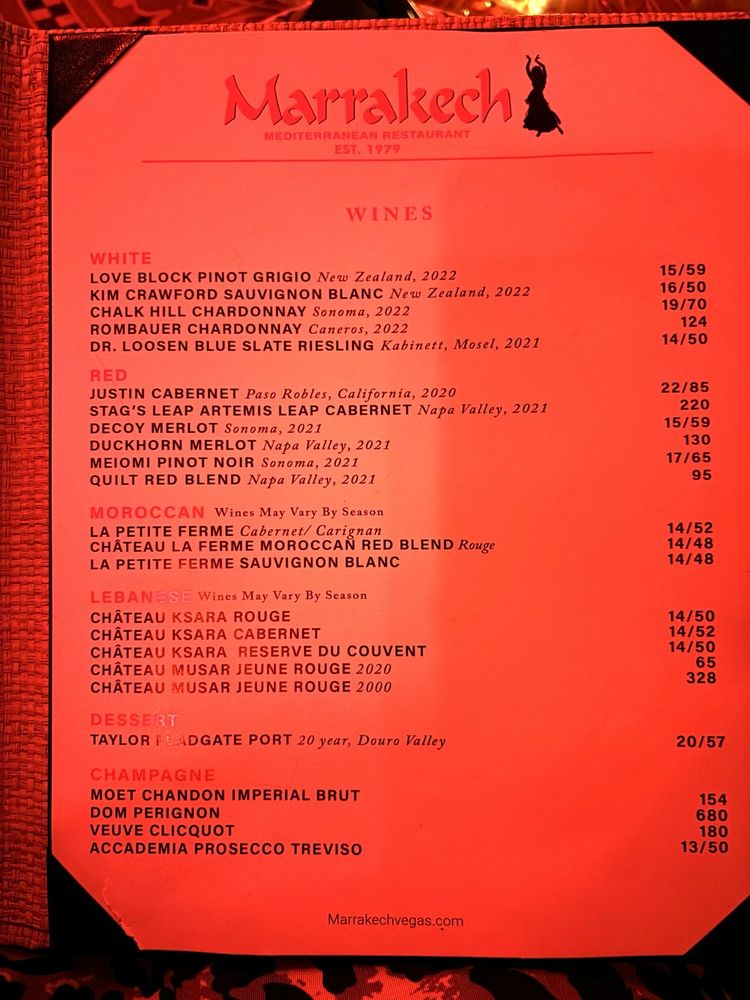 Marrakech Menu